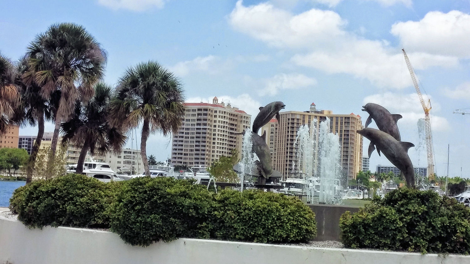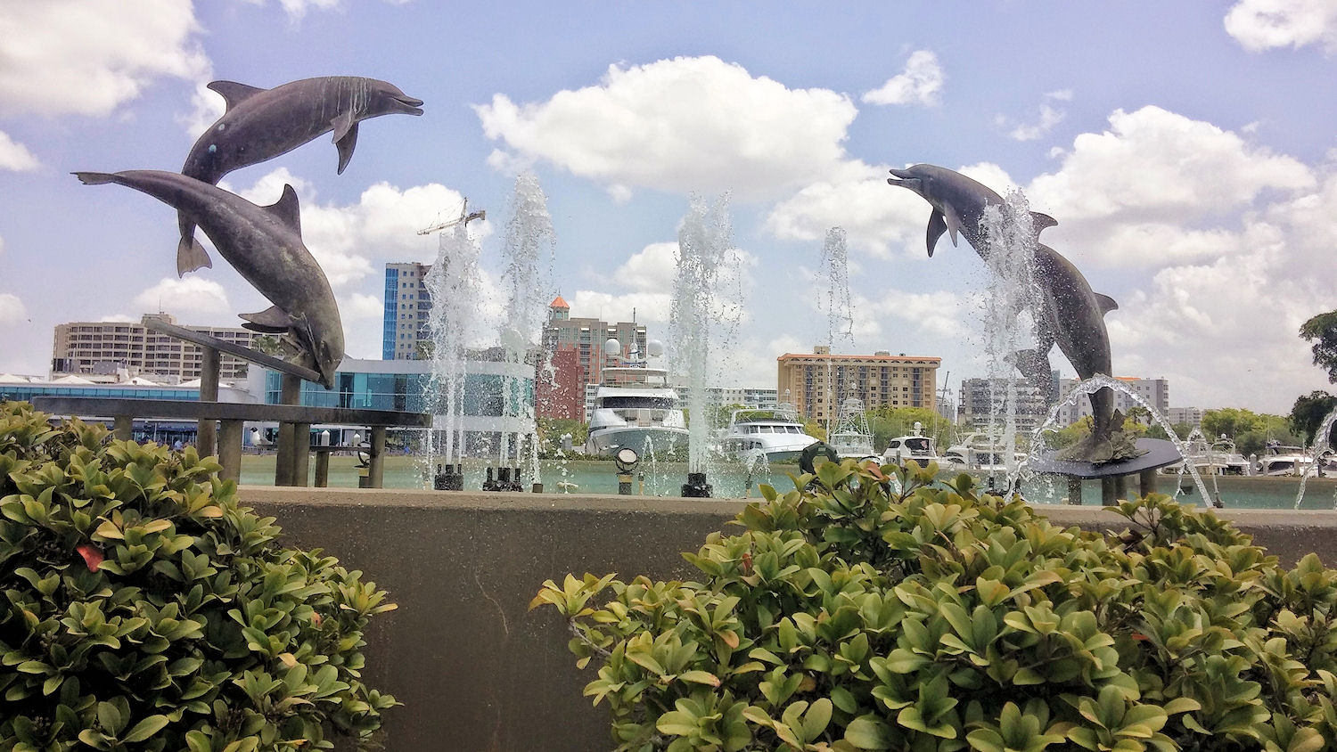 Am malerischen Dolphin Fountain, der zwischen Bucht und Marina liegt, kann man