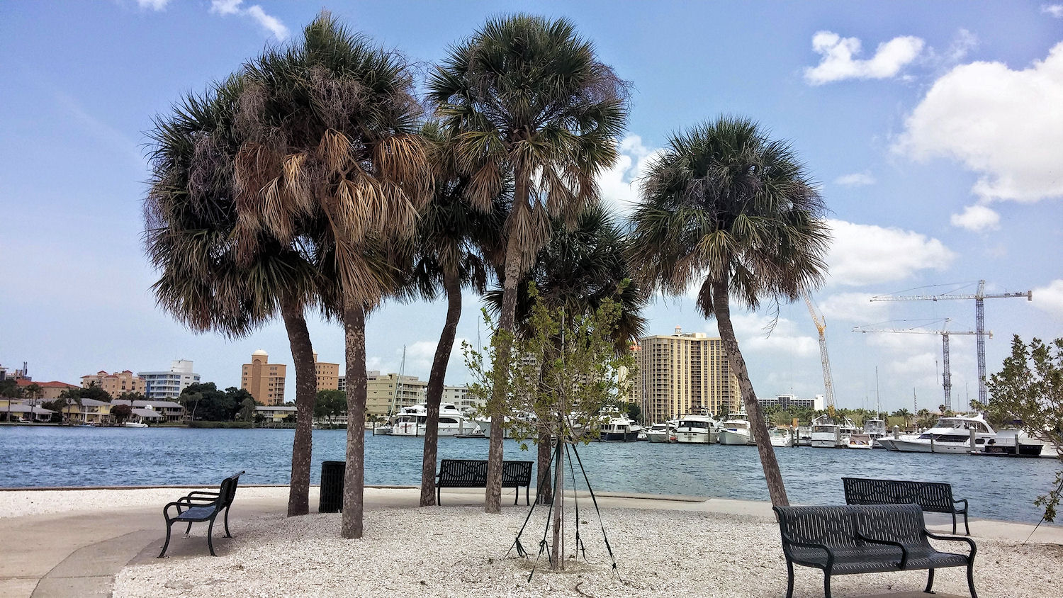 Ein paar hundert Meter von Downtown Sarasota entfernt, erreicht man die Waterfront und Marina mit dem wunderschönen 0.13 km² großen Bayfront Park.